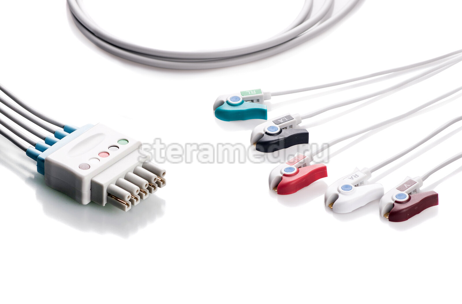 ЭКГ кабель пациента 5 отведений, прищепка для Narkomed 6400; B450, B650, B850, PRO 1000, B40; Dash 1000, 2500, 4000, 5000, PRO2000, PRO3000, PRO4000, Eagle, MAC-Lab, Solar 3000, 8000, 9500, Tram 100, 200, 300, 400, 451, 500, 600, 800; Logiq 5, 7, Vivid
