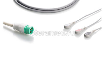 ЭКГ кабель пациента 3 отведения, кнопка для Comen: C50, C60, C70, C80, WQ-001, WQ-004, STAR 8000A (2018 г.в.), STAR 8000D (после 2015 г.в.)