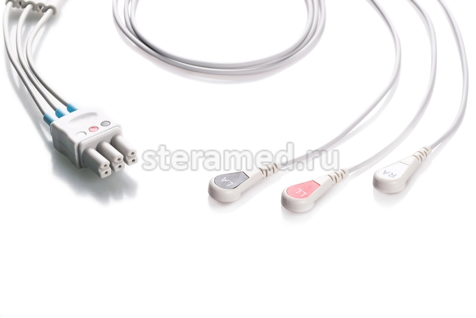 ЭКГ кабель отведений пациента 3 отведения, кнопка для Draeger: Infinity C500, C700, Delta, Delta XL, Gamma, Gamma X, Gamma XL, Kappa, Kappa XLT, Omega S, Vista, Vista XL, SC 6000, SC 7000, SC 9000; Schiller