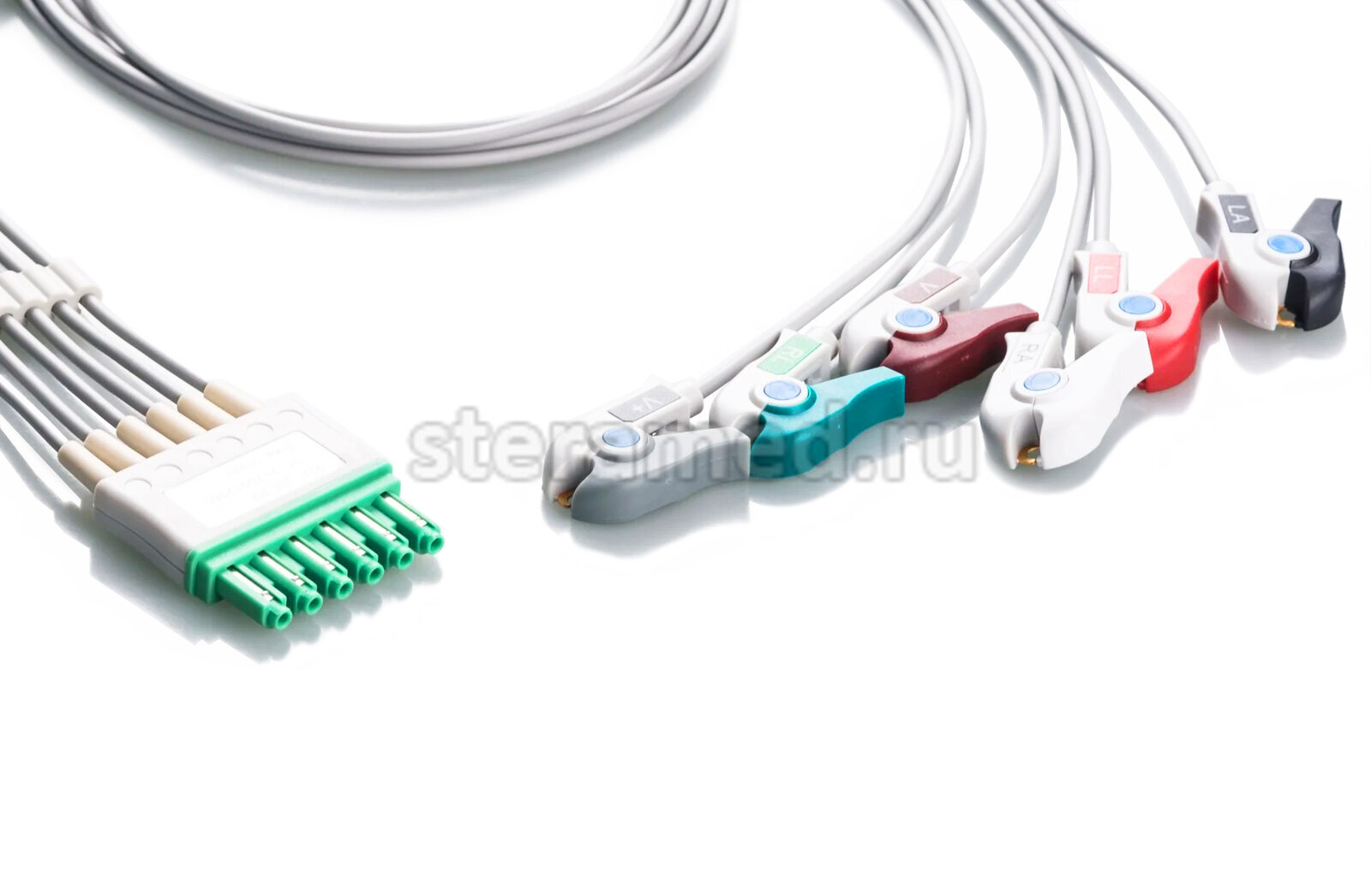 ЭКГ кабель отведений пациента 6 отведений, прищепка для Draeger: Infinity Gamma, Gamma XL, Gamma X, Delta, Delta XL, Kappa, Kappa XLT, Vista, Vista XL