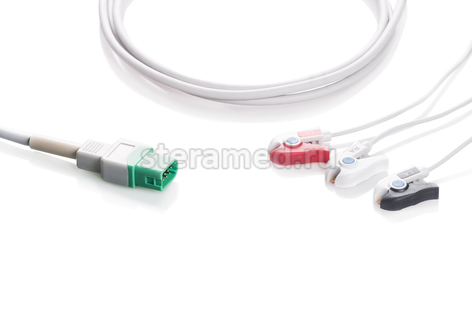 ЭКГ кабель пациента 3 отведения, прищепка для Mindray: Datascope Passport V12, V21