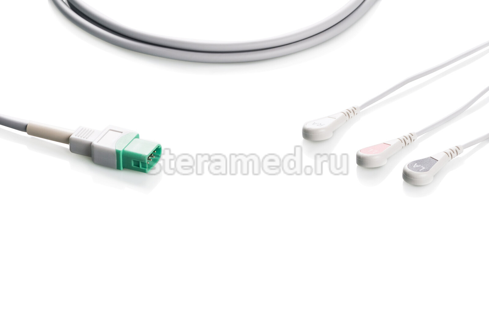 ЭКГ кабель пациента 3 отведения, кнопка для Mindray: Datascope Passport V12, V21