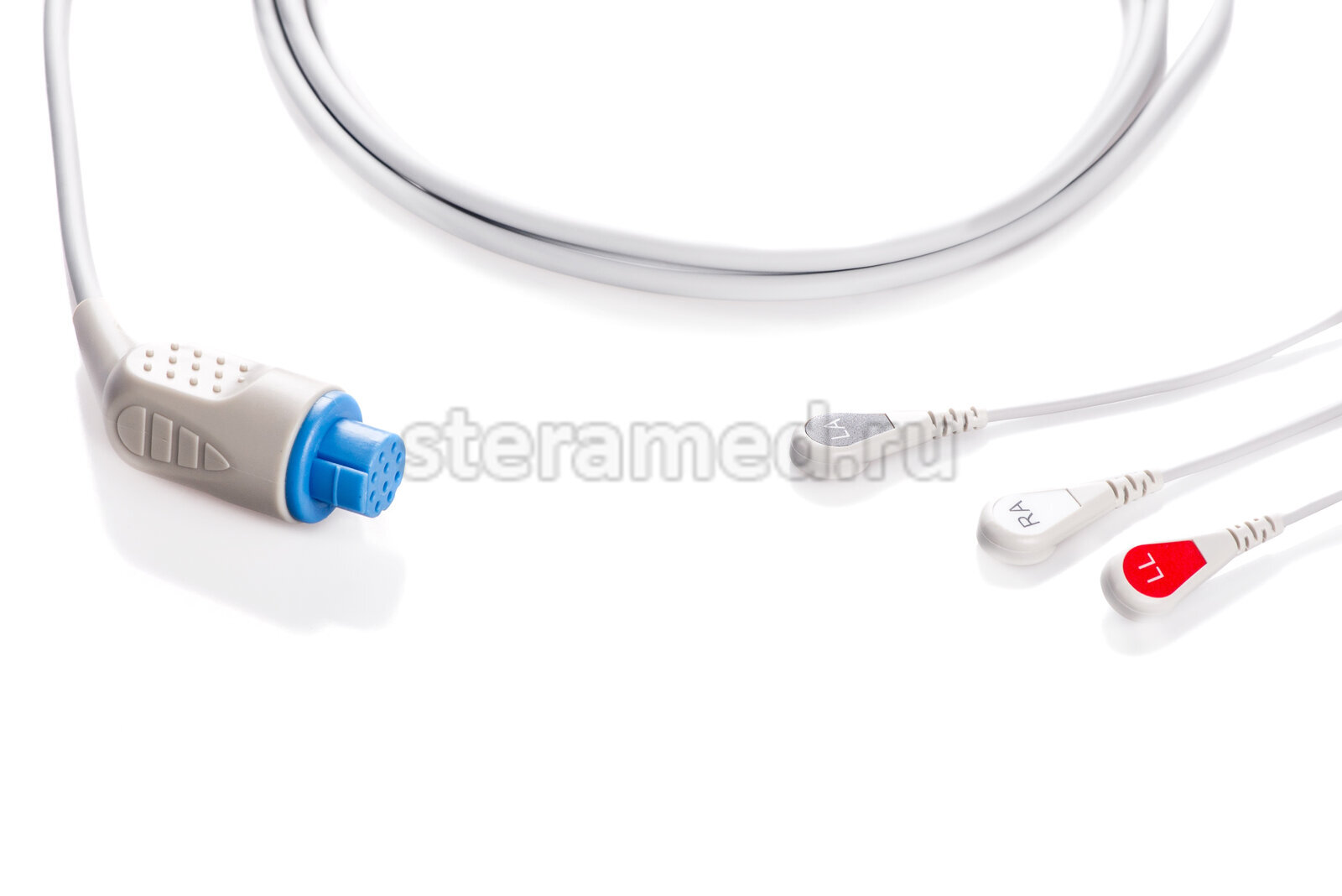 ЭКГ кабель пациента 3 отведения, кнопка для GE Datex-Ohmeda: AS/3, AS/3 Compact, CS/3, S/5, S/5 Compact, Cardiocap 1, Cardiocap 2, Cardiocap 5, Light Monitor, Satlite Plus S5, Aespire
