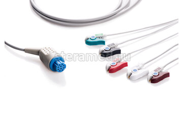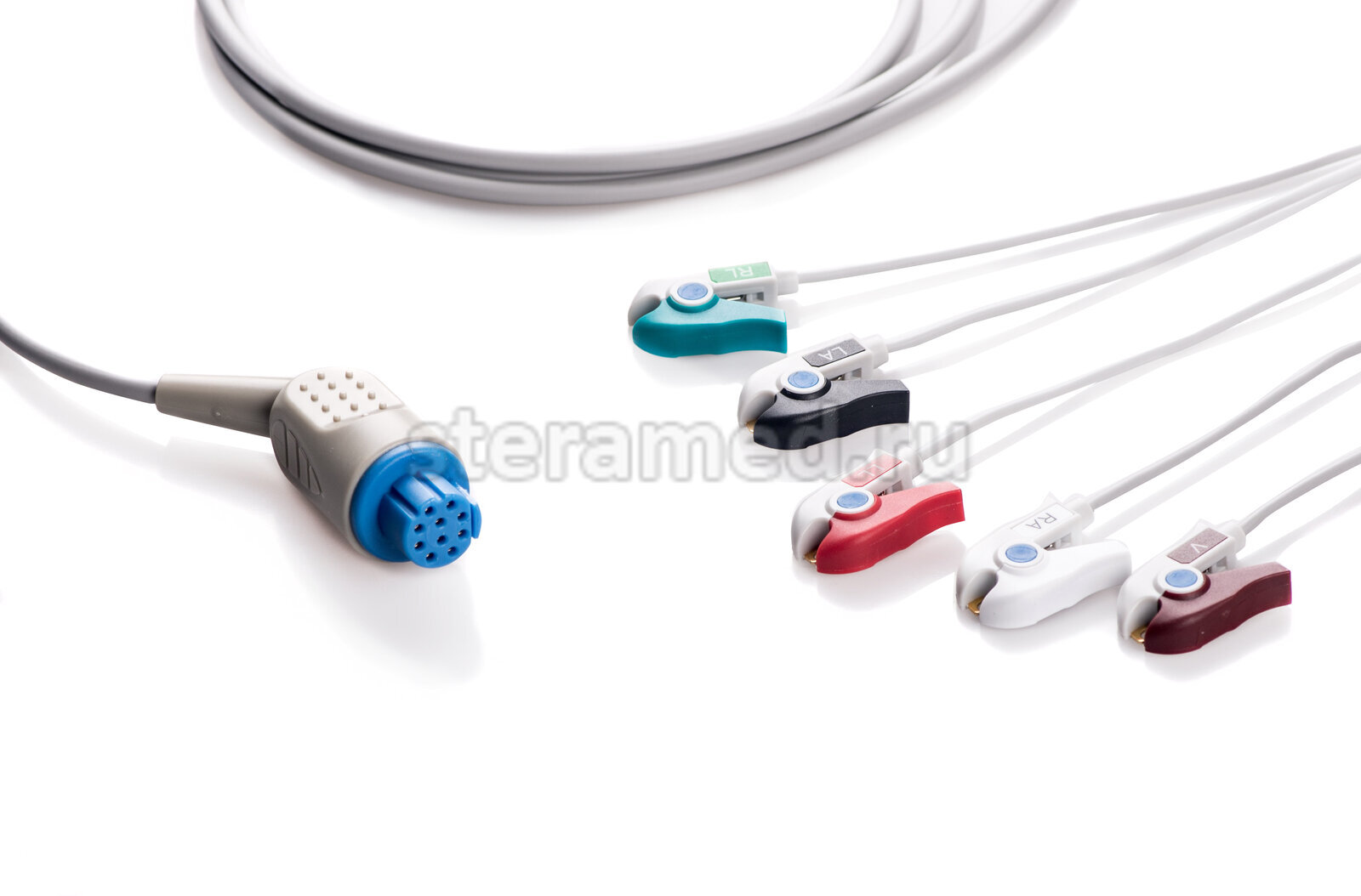 ЭКГ кабель пациента 5 отведений, прищепка для GE Datex-Ohmeda: AS/3, AS/3 Compact, CS/3, S/5, S/5 Compact, Cardiocap 1, Cardiocap 2, Cardiocap 5, Light Monitor, Satlite Plus S5, Aespire