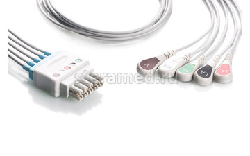 ЭКГ кабель отведений пациента 5 отведений, кнопка для GE Datex-Ohmeda: AS/3, AS/3 Compact, CS/3, S/5, S/5 Compact, Cardiocap 1, Cardiocap 2, Cardiocap 5, Light Monitor, Satlite Plus S5, Aespire
