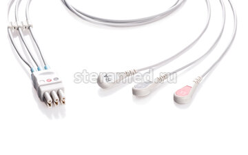 ЭКГ кабель отведений пациента 3 отведения, кнопка для GE Datex-Ohmeda: AS/3, AS/3 Compact, CS/3, S/5, S/5 Compact, Cardiocap 1, Cardiocap 2, Cardiocap 5, Light Monitor, Satlite Plus S5, Aespire