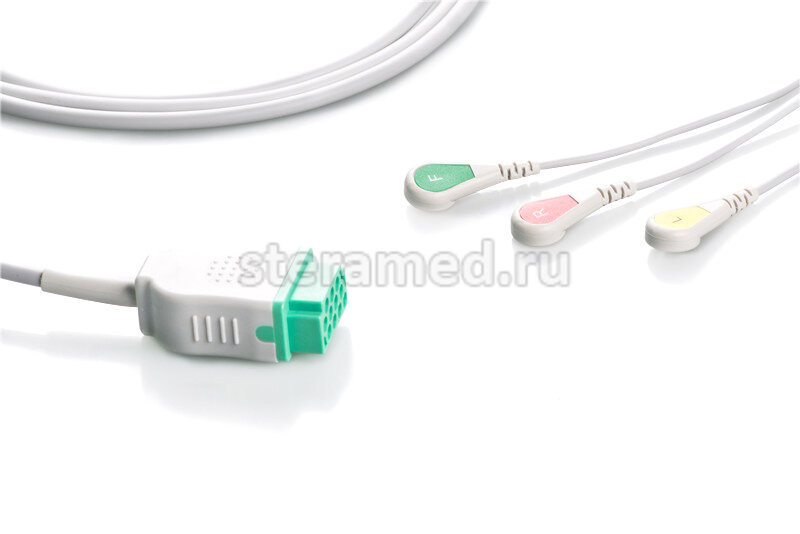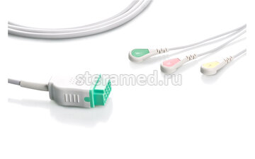 ЭКГ кабель пациента 3 отведения, кнопка для Narkomed 6400; B450, B650, B850, PRO 1000, B40; Dash 1000, 2500, 4000, 5000, PRO2000, PRO3000, PRO4000, Eagle, MAC-Lab, Solar 3000, 8000, 9500, Tram 100, 200, 300, 400, 451, 500, 600, 800; Logiq 5, 7, Vivid