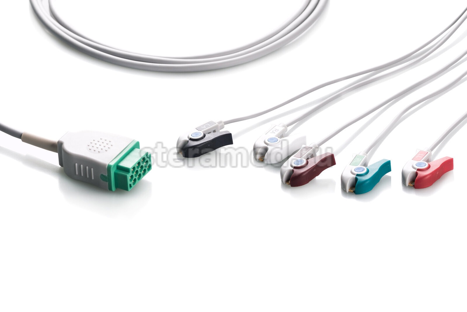 ЭКГ кабель пациента 5 отведений, прищепка для Narkomed 6400; B450, B650, B850, PRO 1000, B40; Dash 1000, 2500, 4000, 5000, PRO2000, PRO3000, PRO4000, Eagle, MAC-Lab, Solar 3000, 8000, 9500, Tram 100, 200, 300, 400, 451, 500, 600, 800; Logiq 5, 7, Vivid