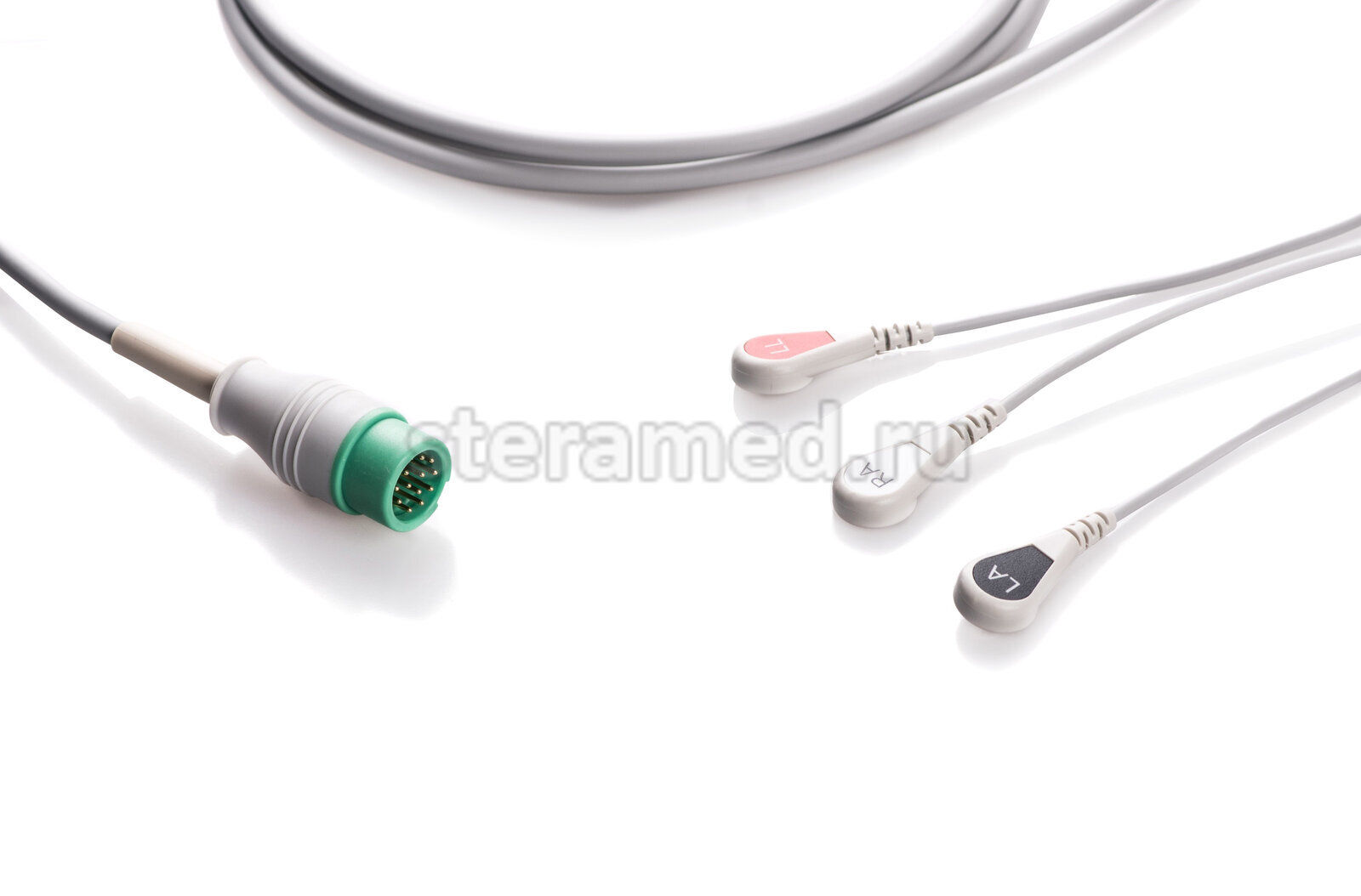 ЭКГ кабель пациента 3 отведения, кнопка для Mindray: MEC 1000, PM5000, PM6000, BeneView T5, T8, DPM6, DPM7, Beneheart D6 и iPM-9800; Biocare iM7/iM8, PM900/PM900S, BM9000/BM9000S