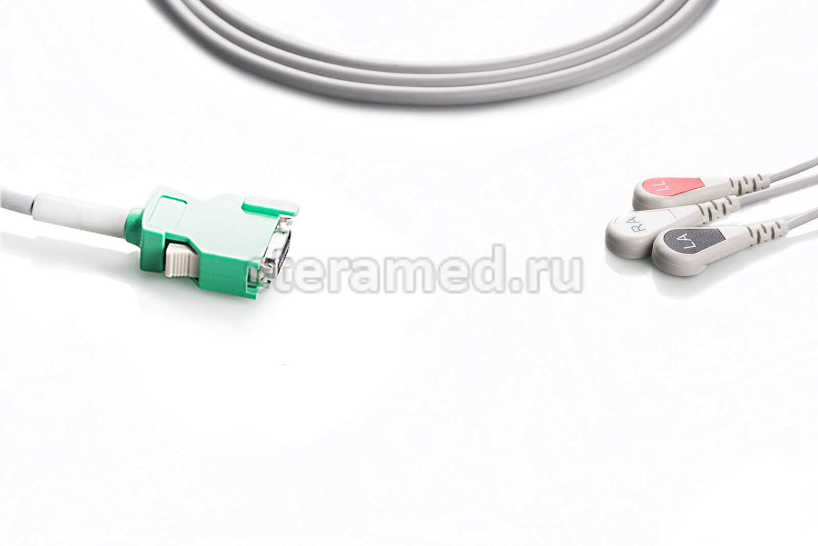 ЭКГ кабель пациента 3 отведения, кнопка для Nihon Kohden: Life Scope OPV-1500, Life Scope N OPV-1500K