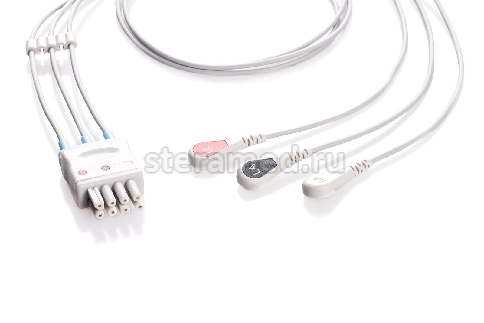 ЭКГ кабель отведений пациента 3 отведения, кнопка для Nihon Kohden: BSM-2300, BSM-2301A, BSM-2301K, BSM-2351A, BSM-4100, BSM-4102, BSM-4102A, BSM-5100, BSM-6000, BSM-6301K, BSM-6501K, BSM-6701K, BSM-9101, PVM-2701, BSM-9510, BSM-9500
