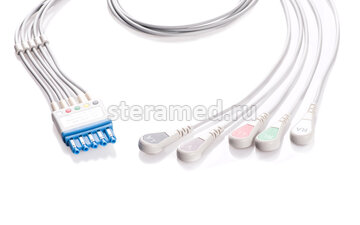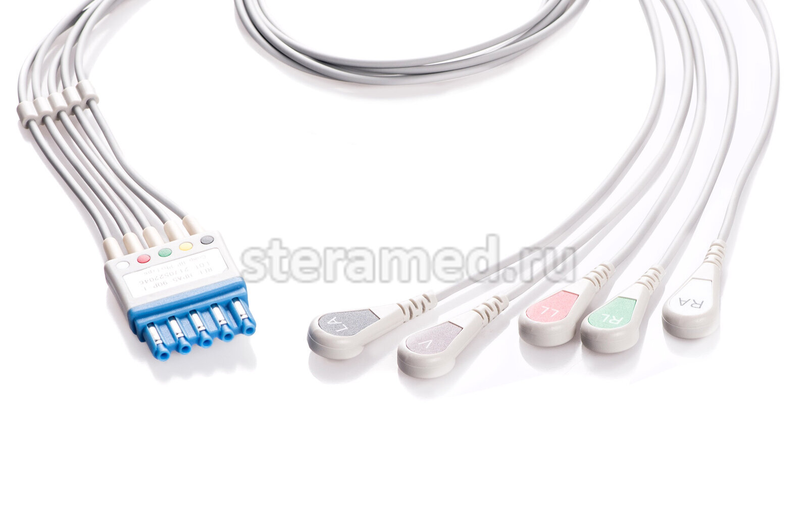 ЭКГ кабель отведений пациента 5 отведений, кнопка для Philips MP 20, MP 30, MP 50, MP 60, IE33, CX50, 43100A, 43110A, 43120A, 78352C, 78354C, 78834C, 862474 C3, М3046А, M2, M3, M4, M4735A, V24E, 50XM; NT3A; NT3A, NT3B, NT3C, NT3E, NT3F; Comen (12pin)