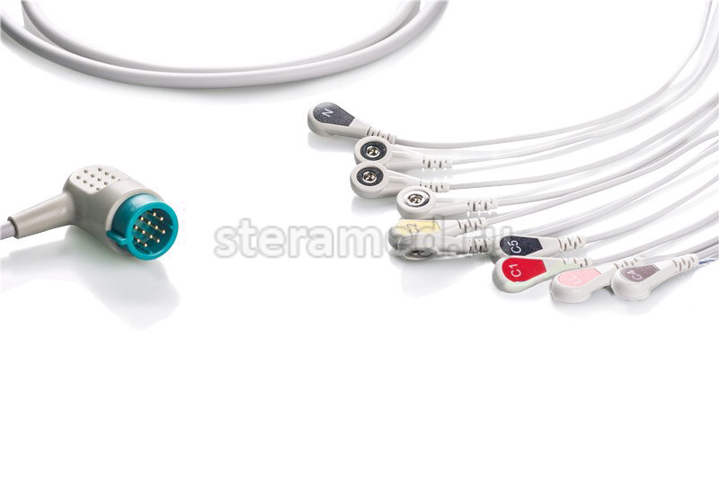 ЭКГ кабель пациента 12 отведений, кнопка для Medtronic: Lifepak 11, Lifepak 12, Lifepak 15, Lifepak 20