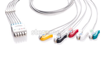 ЭКГ кабель отведений пациента 5 отведений, прищепка для Dash 1000, 2500, 4000, 5000, PRO2000, PRO3000, PRO4000, Eagle, MAC-Lab, Solar 3000, 8000, 9500, Tram 100, 200, 300, 400, 451, 500, 600, 800; Logiq 5, 7, Vivid E9, I; Ultraview 90492, 91220, 90496