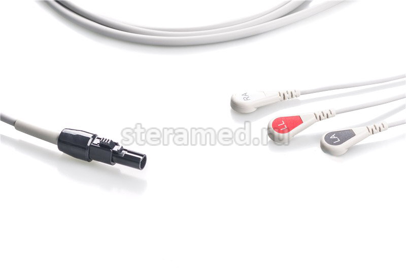 ЭКГ кабель пациента 3 отведения, кнопка для Welch Allyn: Propaq LT, Micropaq