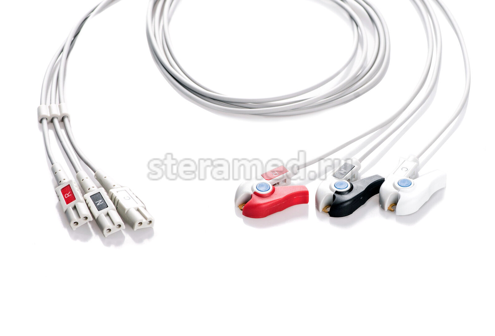 ЭКГ кабель отведений пациента 3 отведения, прищепка для Mindray, Draeger, GE Critikon, GE Marquette, Spacelabs, GE Datex-Ohmeda