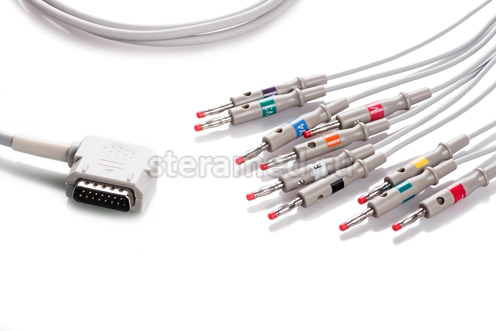 Кабель ЭКГ для Kenz ECG 108, 109, 110, 305, Cardico 302, 306, 601, 610, 1203, 1207, 1210, 1211, 1215, тип «Банан»